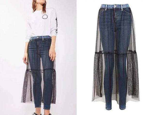 Quần jeans kết hợp với váy - một sáng tạo 2 trong 1 dành cho những cô nàng vừa thích mặc váy, vừa thích mặc quần.