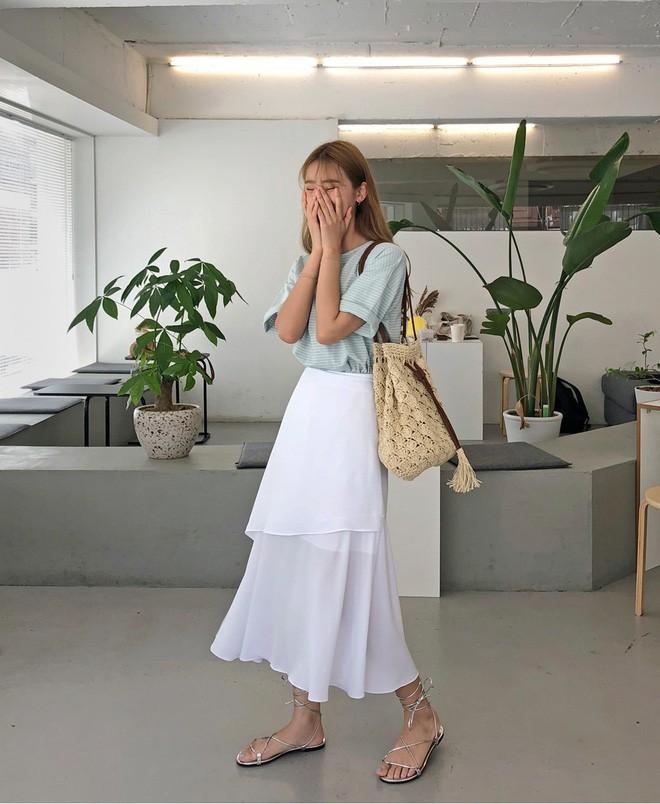 Với team "sợ nắng" thì cứ che chắn kỹ với váy voan dài với áo phông là ổn rồi.