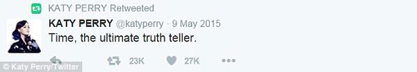 Katy retweet thêm câu nói: "Thời gian sẽ nói lên sự thật cuối cùng"