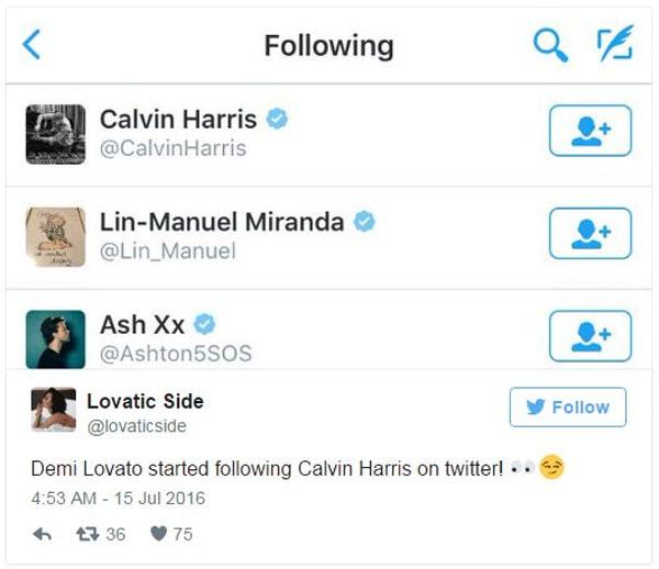 Một fan phát hiện ra Demi Lovato vừa nhấn "theo dõi" Calvin Harris