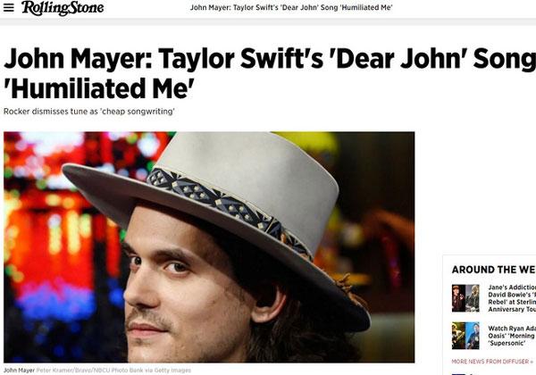 Không những thế, John Mayer cũng đáp trả lại Taylor Swift bằng một bài hát tên "Paper Doll". Tuy John không chính thức thừa nhận, nhưng các fan đều nhận ra ca từ bài này rõ ràng như trả lời bài "Dear John" của Taylor.