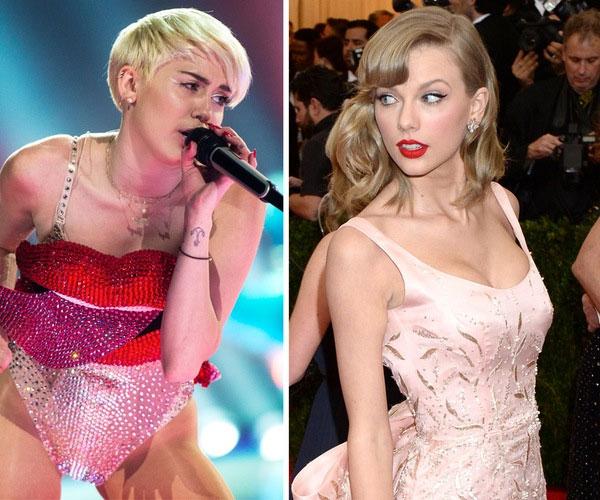 Miley Cyrus cũng là một ngôi sao nhiều lần thể hiện thái độ chống đối Taylor Swift. Năm ngoái, trong một bài phỏng vấn với tạp chí Marie Claire, Miley đã bày tỏ thắc mắc của mình xung quanh "Bad Blood" - MV đang được đề cử cho giải Video của năm của Taylor: "Tôi không hiểu cái vụ trả thù bạo lực đó. Như vậy thì được coi là hình mẫu tốt sao? Và tôi thì là gương xấu bởi vì tôi cứ lăng xăng mà không che ngực? Tôi không chắc vì sao ngực lại là cái gì đó xấu xa hơn súng ống".