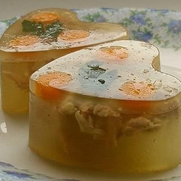 Đây là món thịt đông của người Nga, làm từ những miếng thịt lợn hoặc thịt bê được cắt miếng, ướp một số gia vị như hạt tiêu, rau mùi tây, tỏi, lá nguyệt quế và một ít rau, thường là cà rốt hoặc hành tây. Món này nấu từng miếng thịt lớn trong một thời gian dài, sau đó mới thái nhỏ, đun thêm vài lần và cuối cùng làm lạnh trong khoảng 3 đến 4 giờ. Món ăn lúc bày ra trông giống như một khối thạch, dù không sử dụng gelatine. Món này ăn kèm với cải ngựa, mù tạt hoặc tỏi nghiền với smetana.