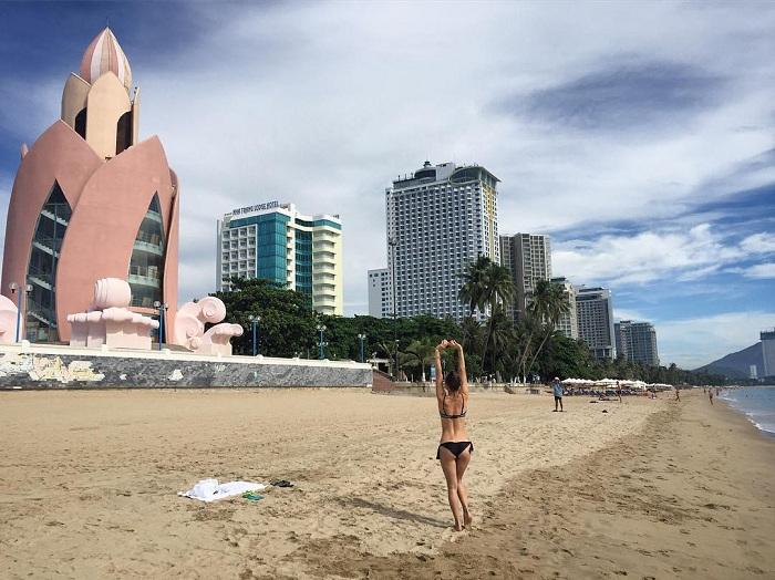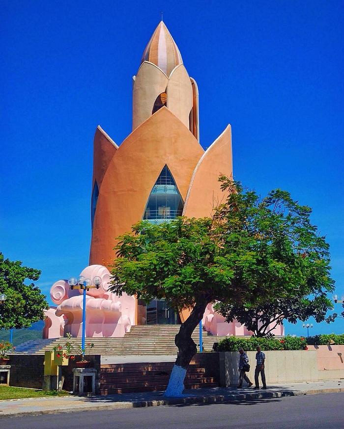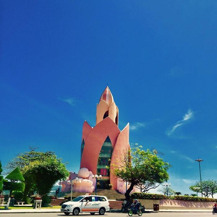 Với màu sắc chủ đạo là hồng và cam, cùng những nét tạo hình mang tính điêu khắc, tháp Trầm Hương như một điểm nhấn độc đáo ngay giữa cảnh quan trên bờ biển.