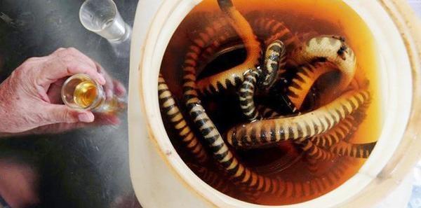 Tiết đẻn (hải xà huyết) là món khiến du khách đến Quảng Bình tò mò muốn thưởng thức hơn cả. Để có chén rượu tiết đẻn đúng chuẩn, người ta phải cắt lấy tiết đẻn rồi đem pha với rượu. Rượu tiết đẻn có vị ấm nồng và hơi chát hòa quyện, mang lại cảm giác rất khó quên. Món này rất tốt cho phụ nữ, giúp giảm chóng mặt, đau lưng và điều hòa cơ thể, an thần, ăn ngủ tốt hơn.