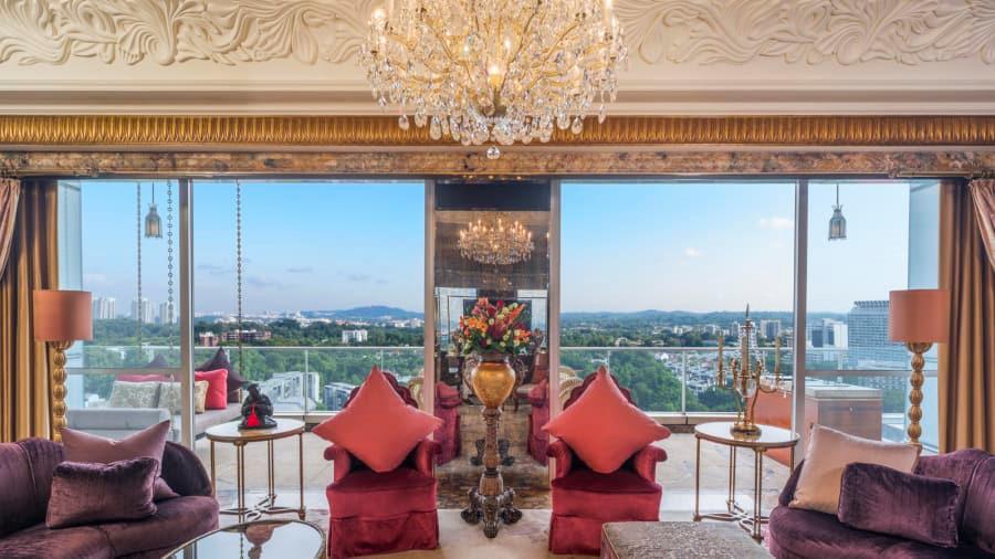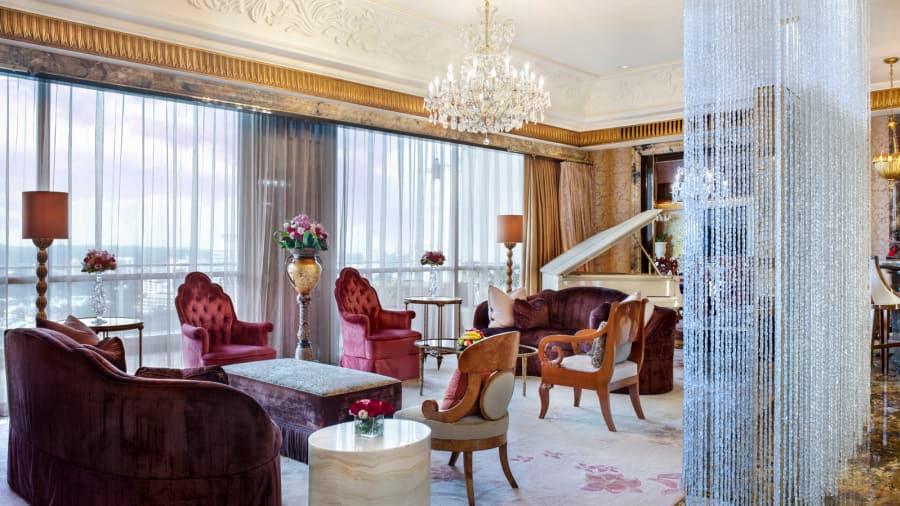 Có giá đặt nhất, St. Regis Presidential Suite được trang hoàng với tấm thảm được làm thủ công, một chiếc đàn piano cùng những tác phẩm nghệ thuật độc đáo của các họa sĩ tên tuổi.