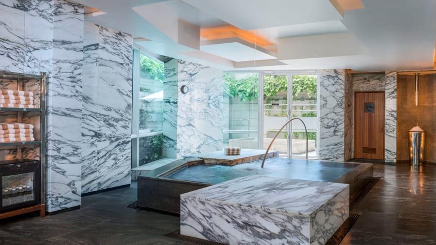 Phòng tắm được trang trí bằng đá cẩm thạch theo phong cách Pháp. Căn phòng này có bể sục riêng và vòi sen massage cùng buồng xông hơi. Khách VIP có thể thư giãn trong căn phòng với chiếc TV 42 inch.