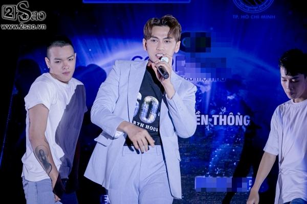 Isaac cũng không ngại thực hiện các động tác vũ đạo như: quỳ, trườn ... trên sân khấu dù đang diện vest.