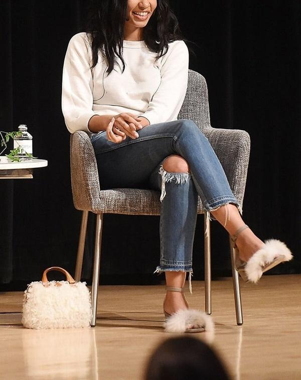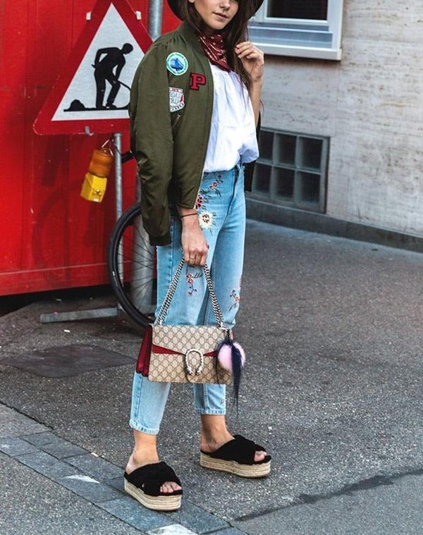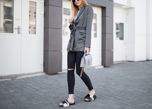 Tưởng chừng rườm rà nhưng dép gắn lông là "trang sức" đắt giá cho những mẫu quần jeans đơn giản. Chúng không chỉ giúp bạn thêm nổi bật mà còn tạo vẻ ngoài sang trọng, quyến rũ.