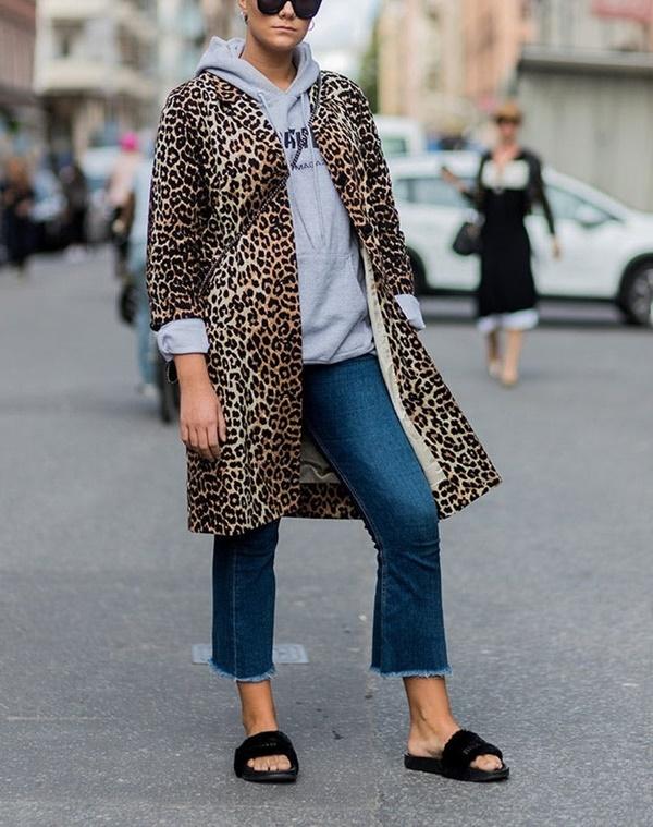 Diện áo hoodie cùng áo khoác dáng dài, quần jeans và dép lông vừa ấm vừa xinh trong những ngày gió lạnh tràn về.