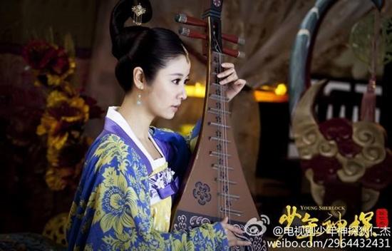 Chiêu Bích Hà (Lương Điền) trổ tài chơi đàn hạc trong "Tư mỹ nhân".