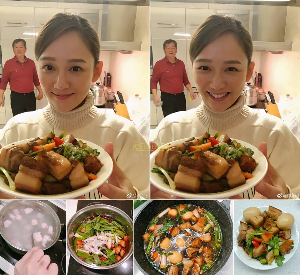 Trần Kiều Ân chia sẻ trên weibo: “Để giảm cân nên phải ăn các loại rau xanh đáng ghét, buổi sáng tôi vô cùng nhiệt huyết, quyết định xuống bếp tự làm một dĩa rau lang xào. Nhưng ôi... nó vừa đắng vừa mặn. Món đơn giản thế này mà tôi cũng biến ra khó ăn như vậy, thật tự phục mình quá".