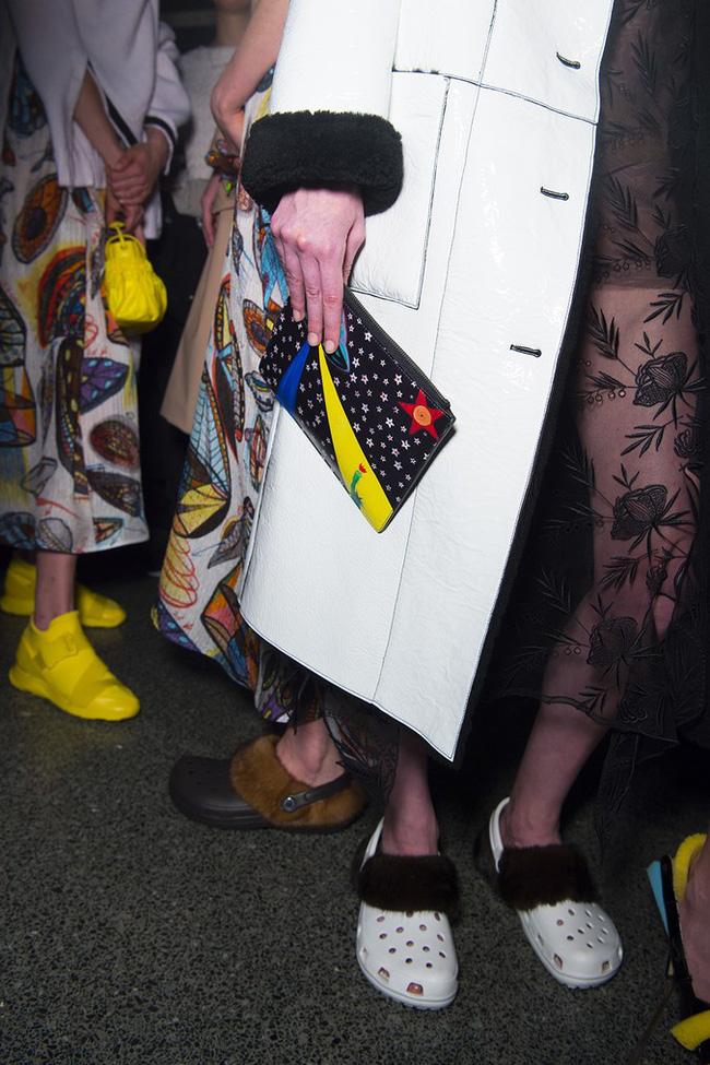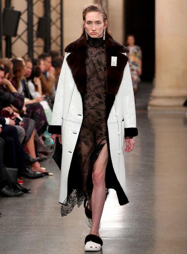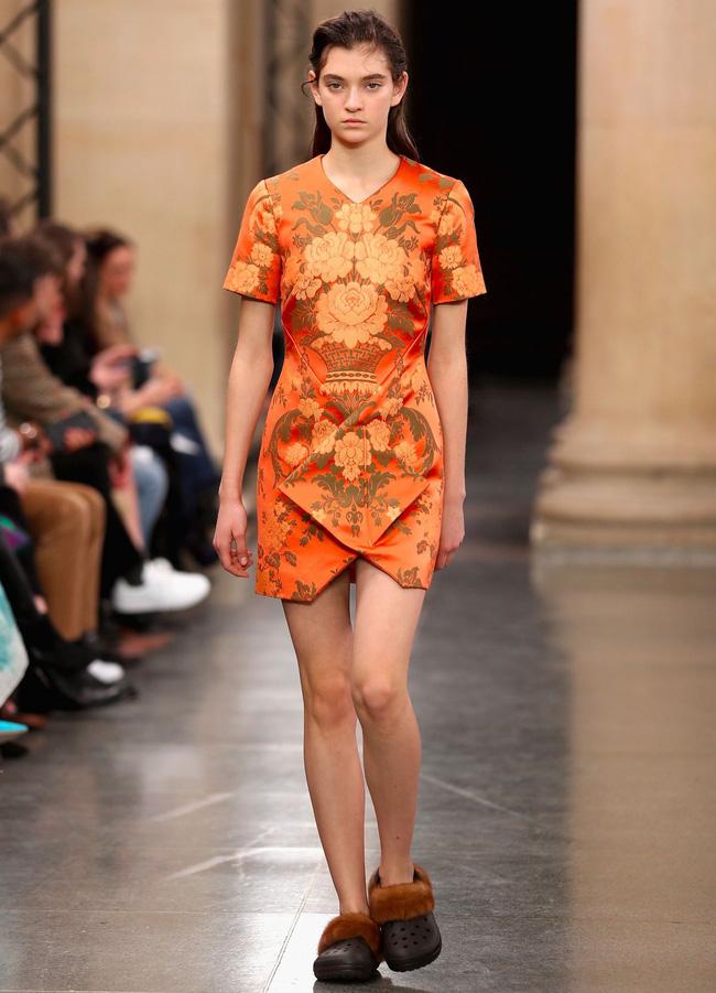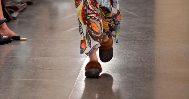 Dép sục đi mưa Crocs xuất hiện trong show diễn Thu/Đông 2017 của thương hiệu Christopher Kane khiến nhiều tín đồ thời trang phải mắt tròn mắt dẹt.