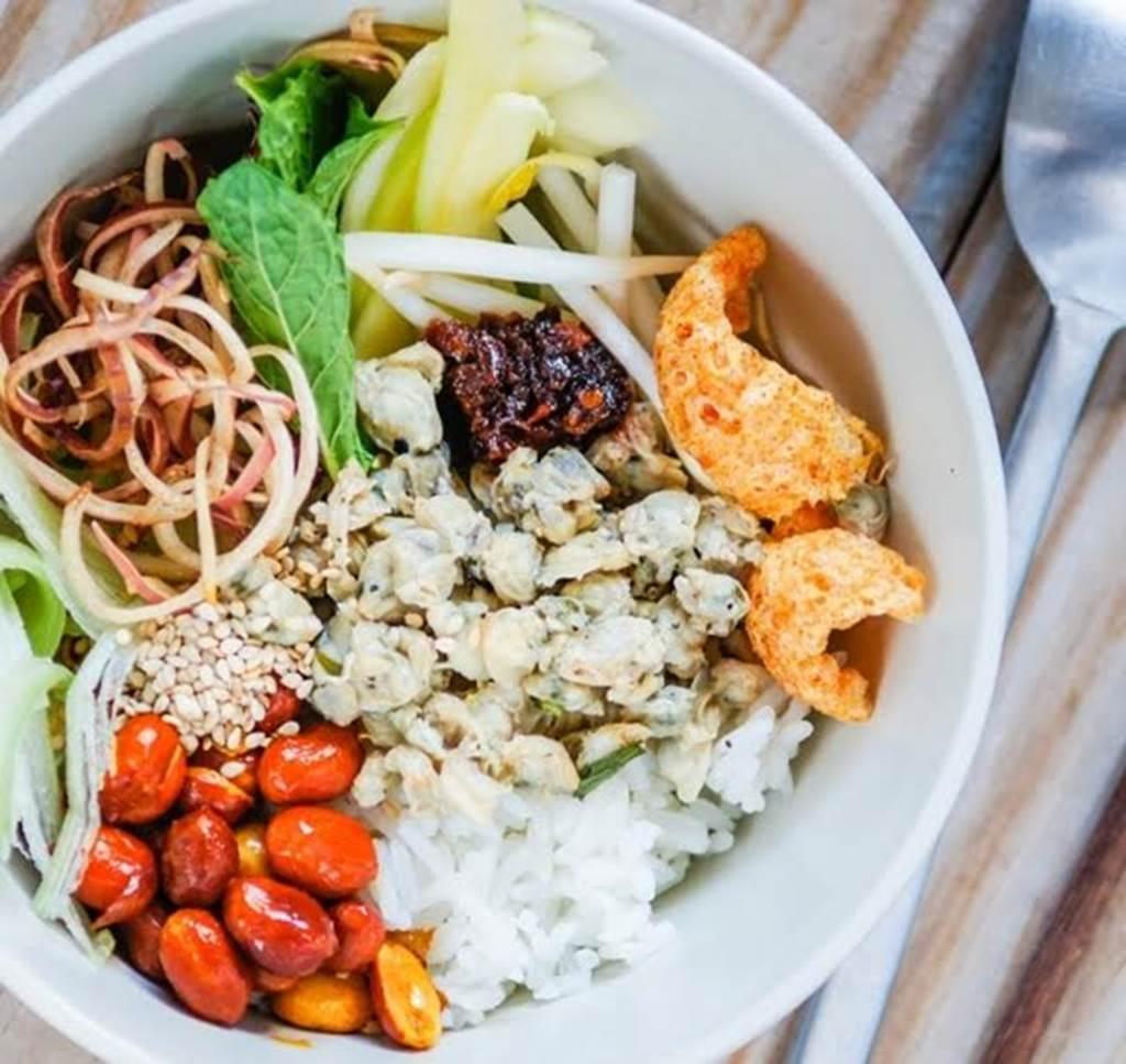 Cơm hến hòa quyện các nguyên liệu, gia vị có vị béo bùi, ngon ngọt và hương