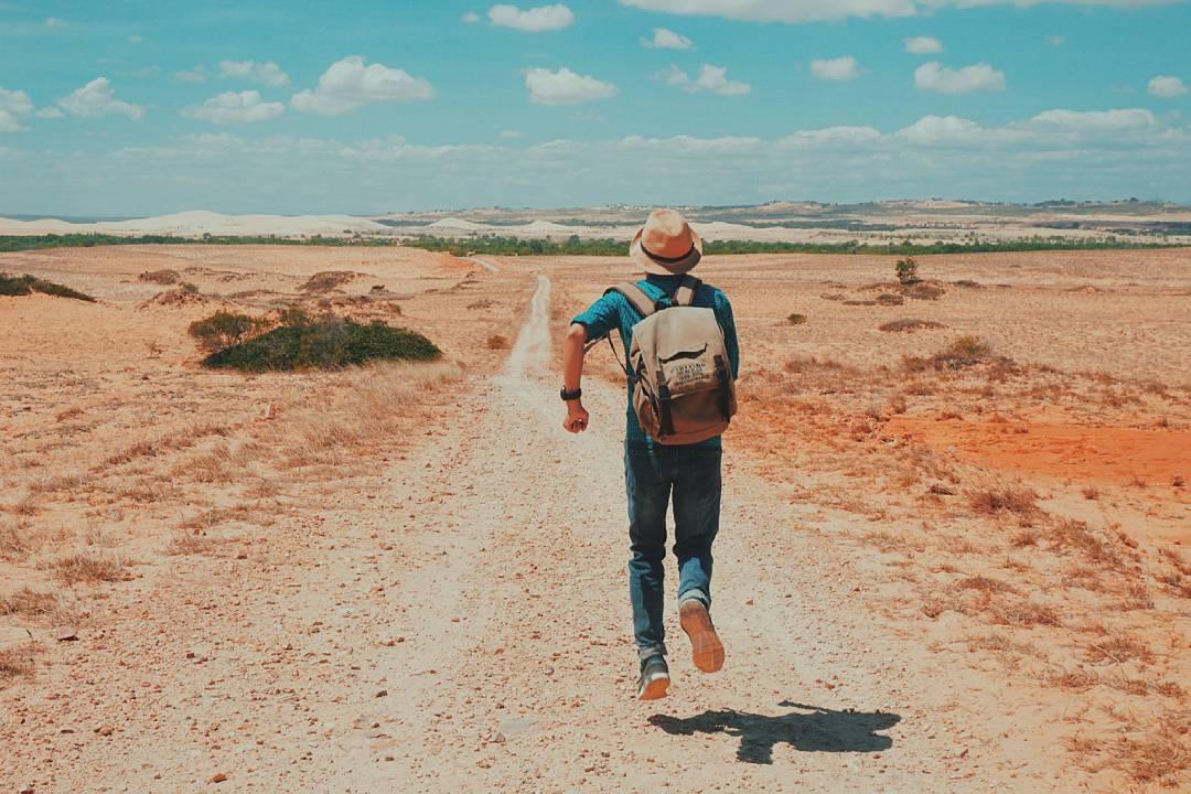 Khi mà không biết làm sao cho đẹp, cứ chọn quay lưng lại với ống kính máy ảnh. Chỉ cần quay lưng đứng im, hoặc là giơ tay nhìn lên bầu trời là ảnh tự nhiên đẹp thôi rồi.