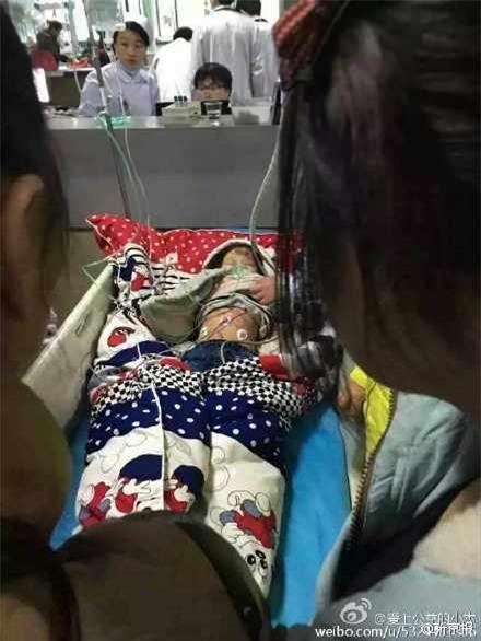 “Cô bé đang trong tình trạng rất xấu.” – Ông Xue Cong, y sĩ phòng cấp cứu Bệnh viện nhân dân Từ Khê cho biết. Bé gái được cha cùng một người phụ nữ trẻ, là mẹ kế của bé, đưa vào bệnh viện trong tình trạng bất tỉnh, đầu có nhiều vết xước.