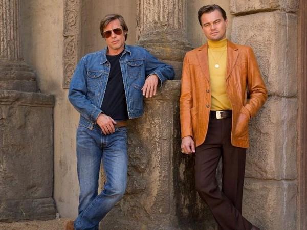 Trong bức ảnh, anh cùng bạn diễn Brad Pitt xuất hiện trong trang phục và đầu tóc mang đậm phong cách thập niên 1960.