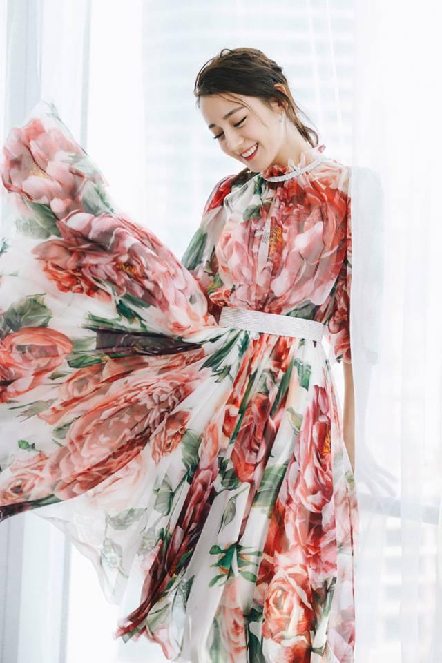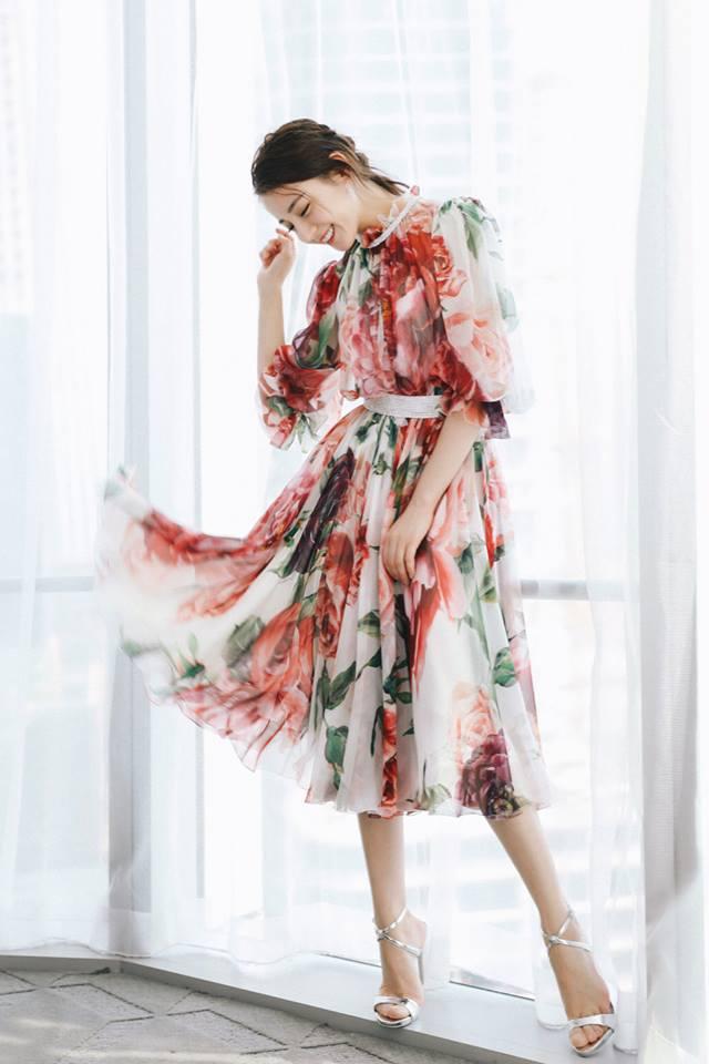 Cô diện một chiếc váy hoa nữ tính, ngập tràn không khí mùa xuân