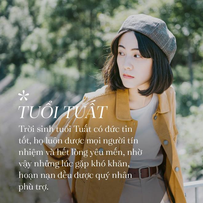 Phụ nữ tuổi Tuất vốn là những người siêng năng, chăm chỉ và rất trung thành. Một khi họ bắt tay làm việc gì đó thì sẽ toàn tâm toàn ý, thậm chí dù có phải hy sinh cũng quyết tâm hoàn thành cho bằng được. Trời sinh tuổi Tuất có đức tin tốt, họ luôn được mọi người tín nhiệm và hết lòng yêu mến, nhờ vậy những lúc gặp khó khăn, hoạn nạn đều được quý nhân phù trợ.
