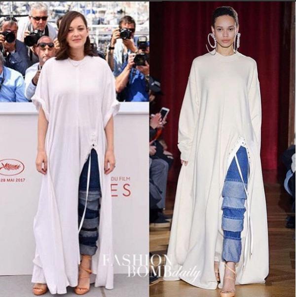 Nữ diễn viên Marion Cotillard bị nuốt chửng vóc dáng trong bộ trang phục lùng tùng quá khổ. Gương mặt kém tươi tắn cùng bộ cánh khó hiểu khiến nữ giám khảo mất điểm trên thảm đỏ.
