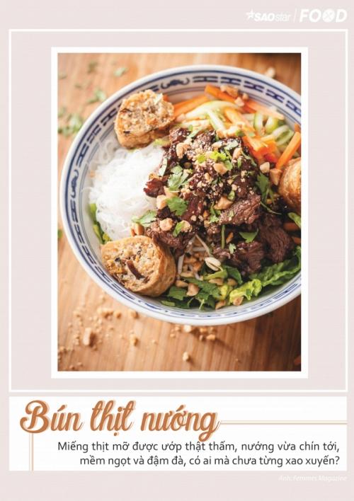 Bên cạnh bún đậu mắm tôm thì bún thịt nướng hay còn được gọi là bún chả cũng là món ăn khiến người ta nghĩ ngay về Hà Nội. Bún chả, nghe có vẻ đơn giản nhưng lại là món ăn đòi hỏi sự chính xác cao trong khâu chế biến. Chả ở đây chính là phần thịt heo nướng, thịt phải được lựa chọn kỹ càng, vừa có nạc vừa có mỡ để khi nướng không bị khô, xắt thành từng miếng vừa ăn và nêm nếm với hành tỏi băm nhuyễn, nướng trên bếp than hồng.