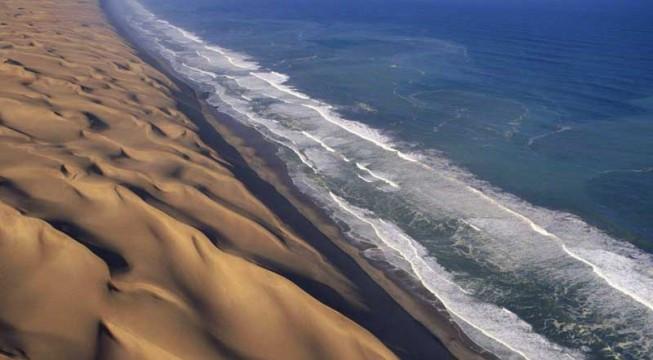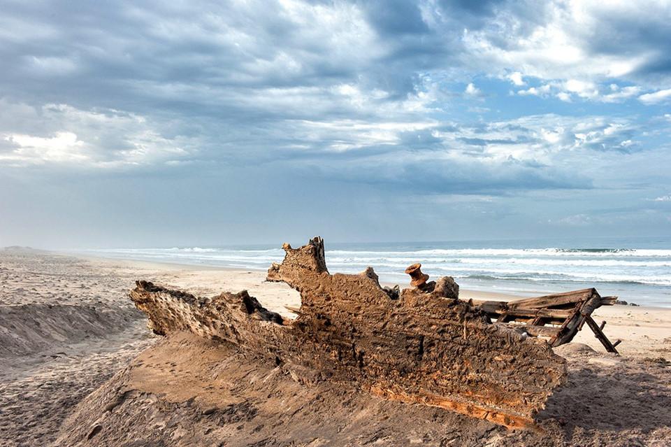 Bãi biển nơi đây có khung cảnh như trong câu chuyện cướp biển Hollywood. Bãi cát dài vô tận với những đụn cát lớn bé làm phong phú thêm khung cảnh. Rải rác trên bãi biển là xương cá voi trắng với mảnh vụn của hơn 1.000 con tàu đắm đã chấm dứt số phận nơi đây. Ban ngày nhiệt độ khá khắc nghiệt khi có thể thay đổi từ nắng nóng đến gió lạnh. Ban đêm bờ biển lại hiện lên kỳ lạ với những lớp sương mù từ đại dương.