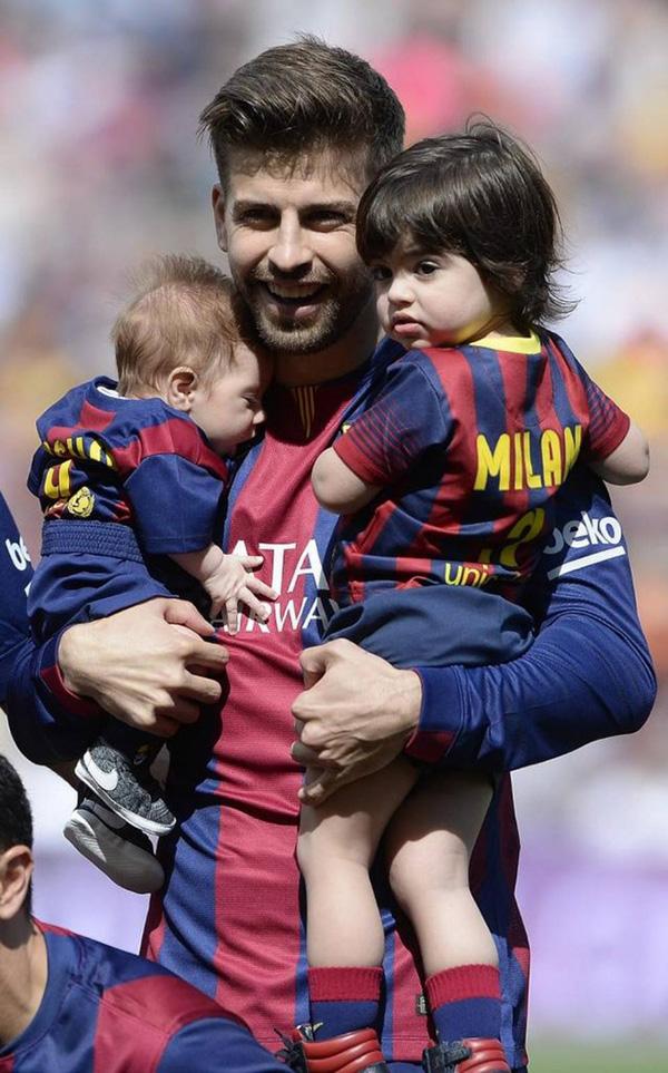 Hậu vệ của Barcelona Gerard Piqué cùng cô ca sĩ xinh đẹp Shakira đã hạ sinh hai cậu nhóc đáng yêu Milan và Sasha. Thậm chí anh chàng còn muốn con các theo nghiệp cầu thủ khi luôn dẫn hai cậu nhóc tới sân bóng và mặc T-shirt của câu lạc bộ Barca