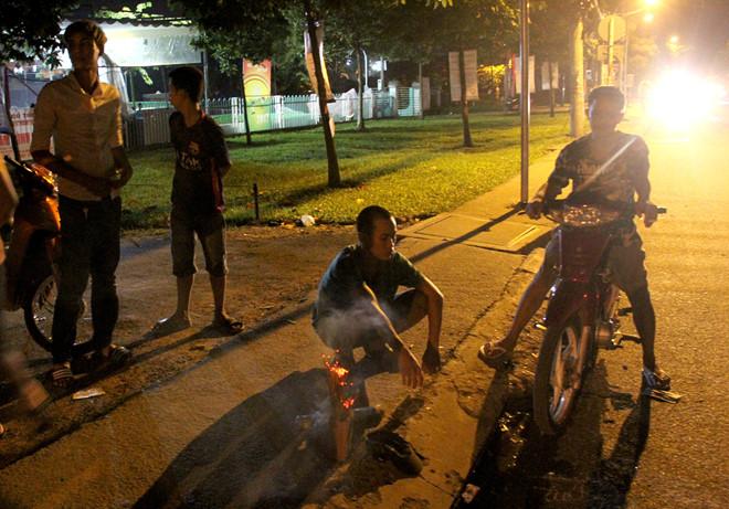 Ngồi thẫn thờ cạnh hiện trường, lâu lâu anh Huy (29 tuổi, ngụ quận 12) lại cầm bật lửa đốt nén nhang.