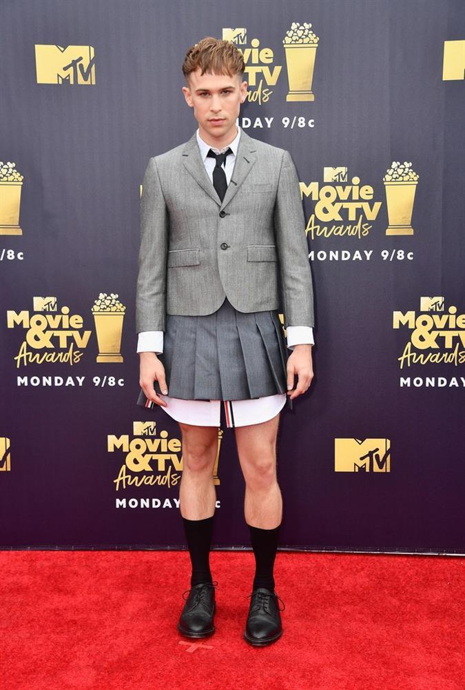 Bất chấp quy tắc thời trang, Tommy Dorfman thản nhiên mặc váy lên thảm đỏ.