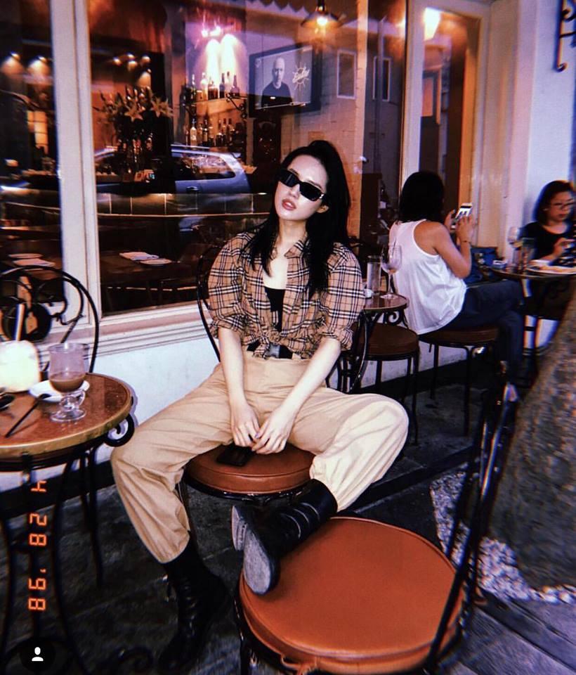 Khánh Linh The Face liên tục ghi điểm và biến hóa với mọi phong cách đa dạng. Set đồ gồm sơ mi buộc vạt, quần màu be ống suông, boots cao cổ, kính đen... mang hơi hướng retro cổ điển pha chút bụi phủi tạo nên một Khánh Linh rất khác..