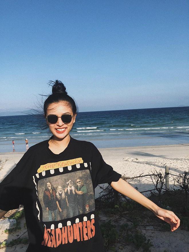 Tú Hảo trung thành với phong cách thời trang năng động, trẻ trung. Chỉ diện áo phông oversize và phong thái tự tin thả dáng trước biển, bức hình check in của cô nàng tràn đầy sức sống.