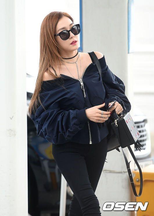 Tiffany (SNSD) làm mới chiếc áo bomber của mình với cách mặc trễ nải khoe vai thon gợi cảm.