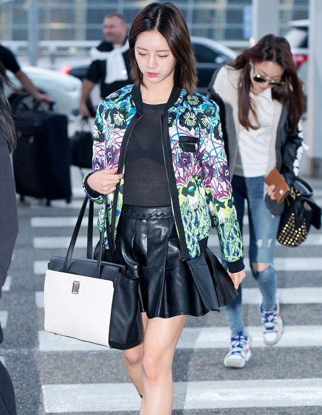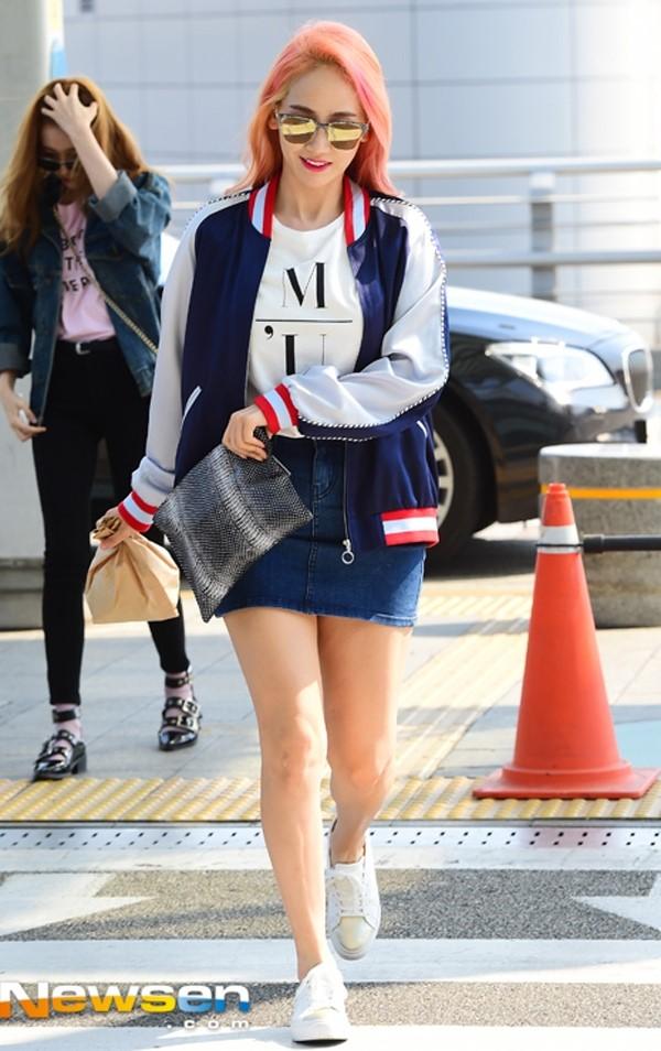 Sunny (SNSD) khoe vóc dáng thể thao khỏe khoắn, cá tính với quần shorts, áo thun, sneaker và bomber tông màu nhã nhặn.