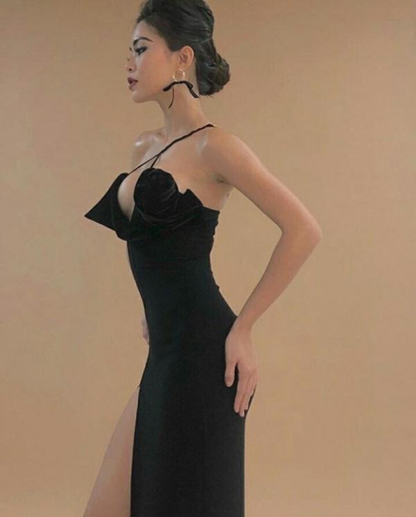 Đây là chiếc váy có kiểu áo khá giống với Mâu Thủy, được Ngọc Trinh diện trong một sự kiện cách đây không lâu. Có vẻ như kiểu khoét chữ V không quá sâu như thế này đang được các mỹ nhân nhiệt tình lăng xê.