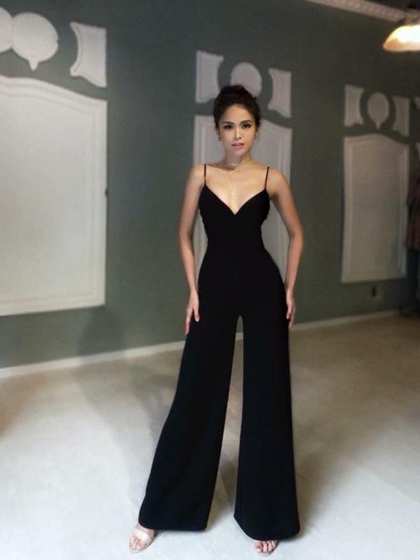 Trước đó, Mâu Thủy cũng diện một kiểu áo hai dây “chiêu thị” phòng một căng tròn.