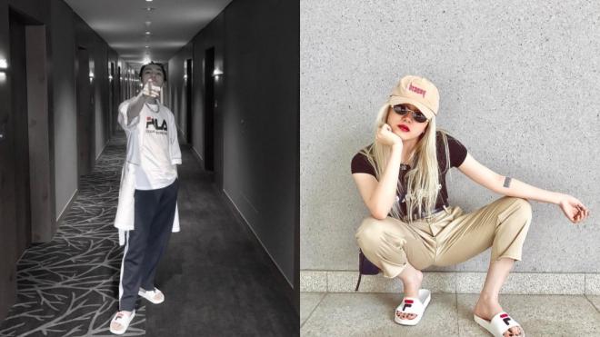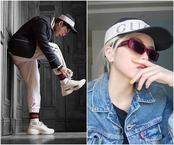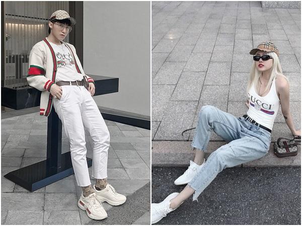 Cả hai cùng đội mũ lưỡi trai, mặc áo Gucci, quần jean rách gấu và sneaker trắng. Nền gạch trong 2 bức ảnh có sự tương đồng. Tất cả sự giống nhau này liệu rằng chỉ là vô tình?