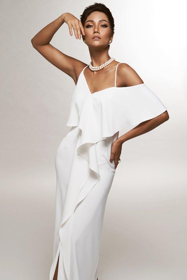 Cứ diện đầm trắng, H'Hen Niê ghi điểm tuyệt đối khi tôn trọn được làn da nâu bóng khỏe. Layout make-up tone nude tôn thêm phần quyến rũ cho người đẹp Ê-Đê.