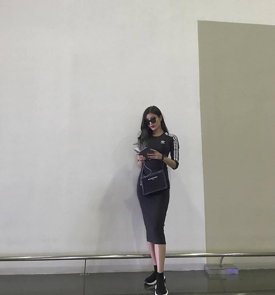 Huyền My năng động, cực chất với váy body Adidas tôn dáng và giầy hãng Balenciaga