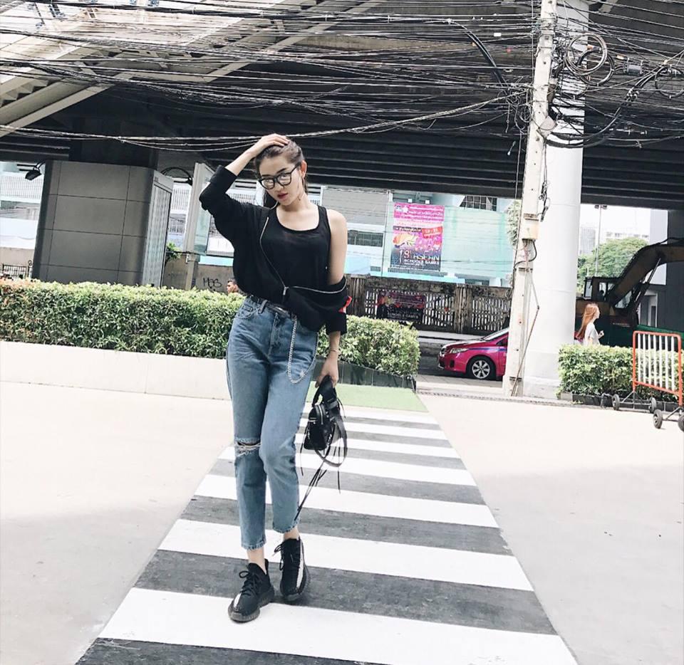 Ở một góc cảnh khác, "nữ hoàng giải trí" giản dị, trẻ trung với áo phông, quần short jean.
