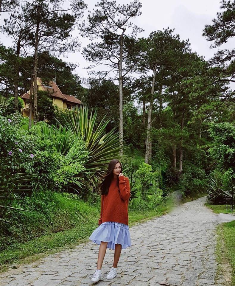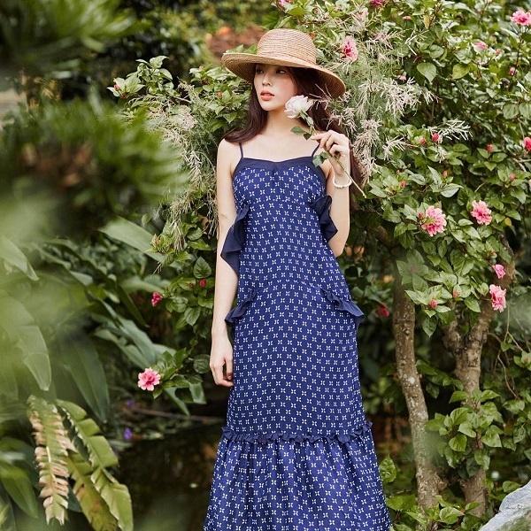 Kỳ Duyên cũng lựa chọn váy maxi họa tiết hoa nhí khoe sắc với thiên nhiên trong street style tuần này
