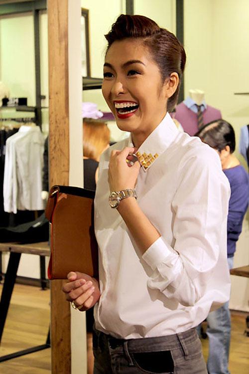 Đi tới đâu, Tăng Thanh Hà cũng được chú ý từ đầu tới chân.