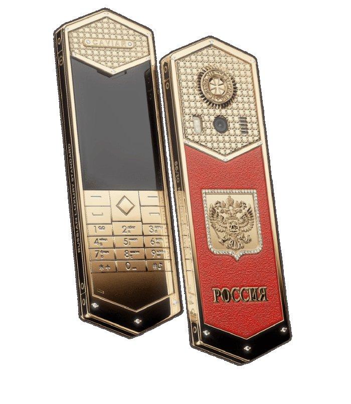 Phiên bản đắt nhất trong series là “Caviar Inauguration Diamond”, khắc họa các biểu tượng quyền lực của chính phủ Nga như quốc huy, con dấu của tổng thống. Vỏ điện thoại được làm từ vàng 18 carat và da, trang trí 95 viên kim cương.