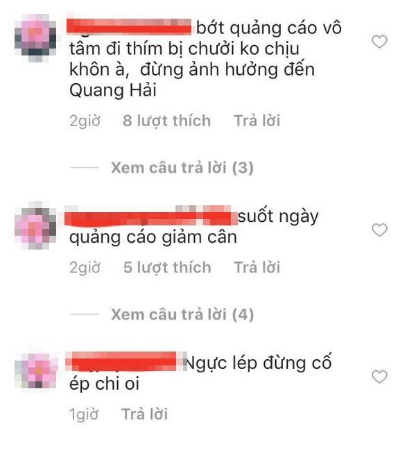 Người soi mói Nhật Lê suốt ngày quảng cáo thuốc giảm cân, số khác lại mỉa mai: "Thuốc có thật sự tốt vậy không em?", "Ngực em đẹp quá, không biết em làm thế nào mà được ngực đẹp vậy. Chắc do mặc size hơi quá thôi". Thậm chí, có người nặng lời: "Bớt quảng cáo vô tâm đi thím. Bị chửi không chịu khôn à. Đừng làm ảnh hưởng đến Quang Hải" hay "Ngực lép đừng cố o ép".