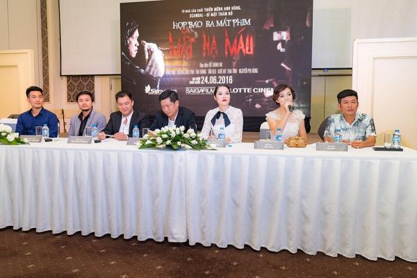 Hôm qua 23.3, đoàn làm phim Mặt nạ máu đã có buổi ra mắt báo giới với sự tham dự của đạo diễn Đỗ Thành An, nhà sản xuất Phạm Việt Anh Khoa, đạo diễn Hoàng Nhật Nam và các diễn viên Dương Cẩm Lynh, Tấn Beo, Tina Tình, Nguyễn Phi Hùng. Riêng NSƯT Hoài Linh, diễn viên hài Thu Trang và ca sĩ Khởi My vì lý do sức khỏe nên đã không kịp đến tham dự buổi
