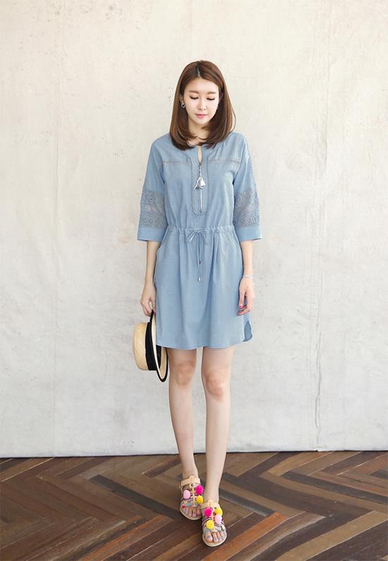 Lời khuyên hữu ích cho bạn khi lựa chọn sắc màu trang phục nơi công sở đó là gam màu trung tính hoặc nền nã. Đừng nên "kết thân" với những màu neon, màu chói sẽ dễ khiến mình bị "lạc điệu" với mọi đồng nghiệp. Một chiếc váy liền thân màu xanh nhã nhặn, thiết kế thắt eo và không quá ôm sát cơ thể sẽ phù hợp với mọi dáng người. Trang phục sẽ giúp bạn vừa tôn được làn da sáng hơn lại vừa nữ tính, dịu dàng. Ngoài ra, bạn có thể phối cùng với xăng đan, giày cao gót thanh mảnh tùy theo sở thích.