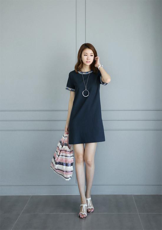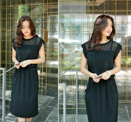 Chiếc váy liền thân dáng suông, gam màu tối là style vô cùng hữu ích giúp cho chị em "giấu nhẹm" vòng eo mỡ, eo "bánh mỳ". Thêm một chiếc vòng cổ thanh mảnh và mới lạ sẽ khiến bạn đẹp hoàn hảo hơn đấy.