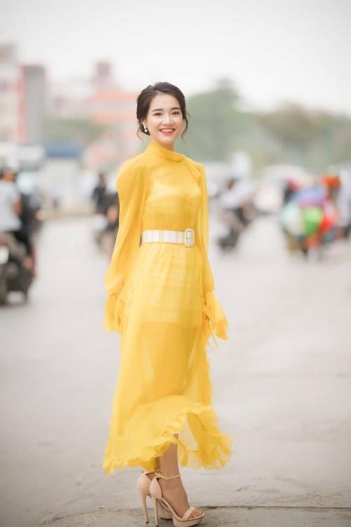 Diện trang phục tông vàng rực rỡ chất liệu voan mỏng manh lộ nội y nhưng Nhã Phương trông chẳng hề kém duyên như nhiều mỹ nhân khác. Ngược lại, nữ diễn viên càng khoe được nhan sắc cuốn hút cùng nụ cười tỏa nắng.