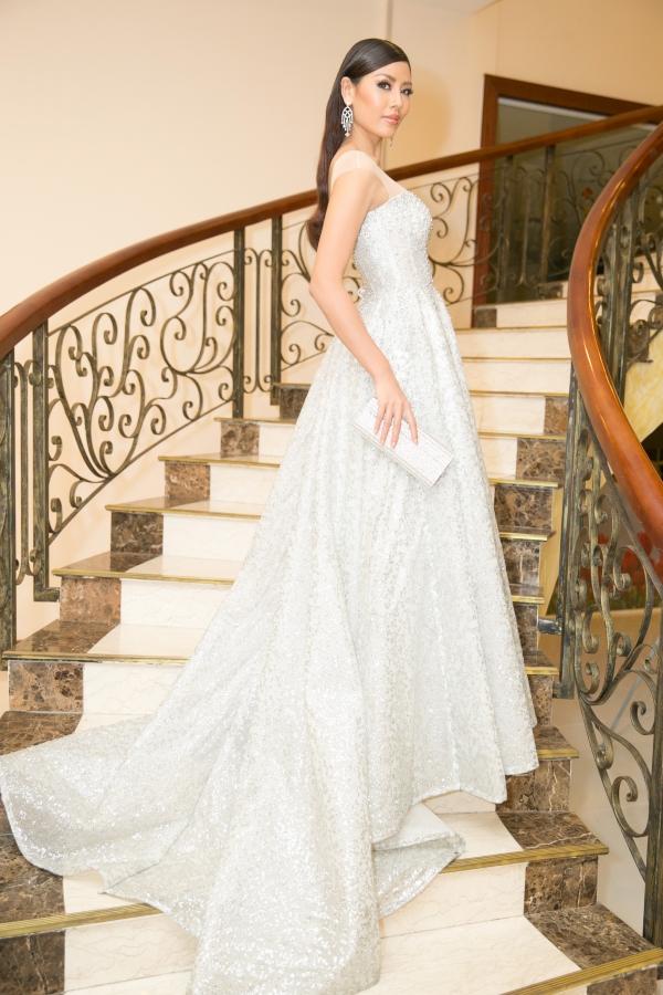 Á hậu Thụy Vân đẹp dịu dàng trong bộ váy dáng xòe màu trắng tinh khôi.