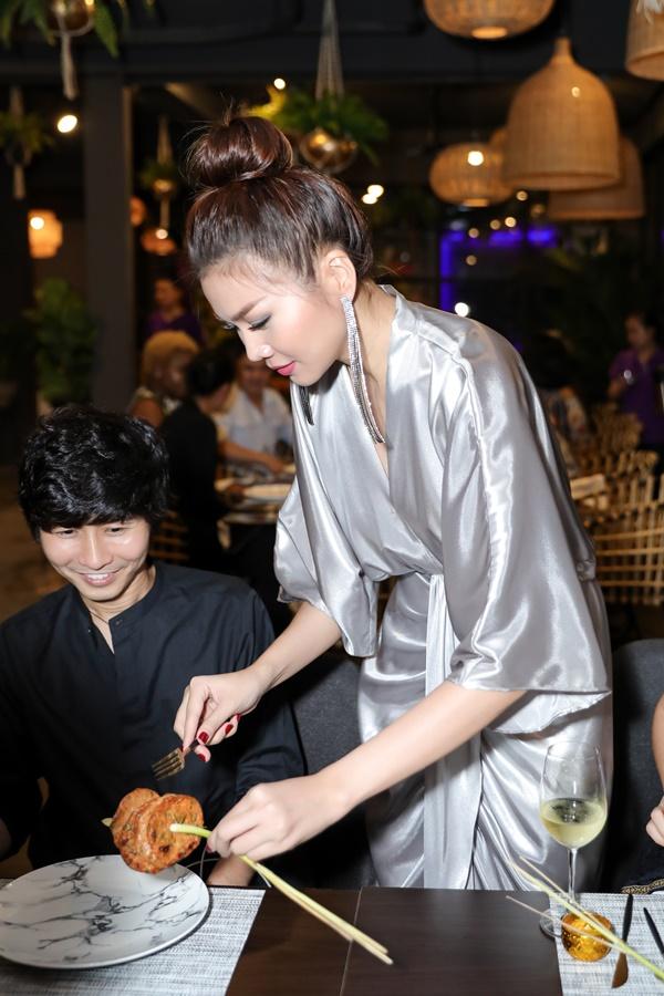 Thanh Hằng đã dành nhiều thời gian để trò chuyện, chăm sóc để mọi người có thể thưởng thức những món ăn một cách trọn vẹn nhất.