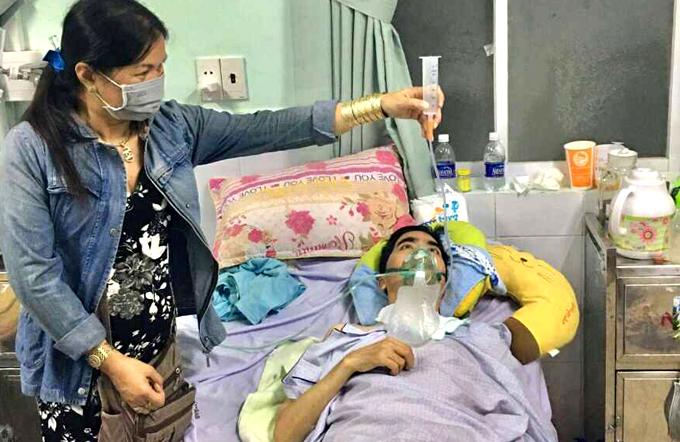 Tại căn nhà 82 Nguyễn Đình Chiểu, thành phố Tân An (Long An), thay vì tập vật lý trị liệu, từ hơn 10 ngày nay, Nguyễn Hoàng hiện chỉ nằm bất động, thường xuyên nhắm mắt, thở thoi thóp, mỗi ngày được bơm sữa hai lần qua ống.